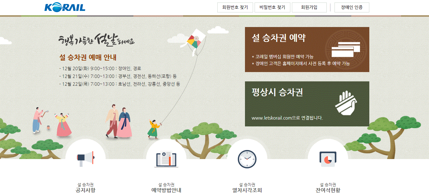 2023년 설 승차권 예약 전용 홈페이지