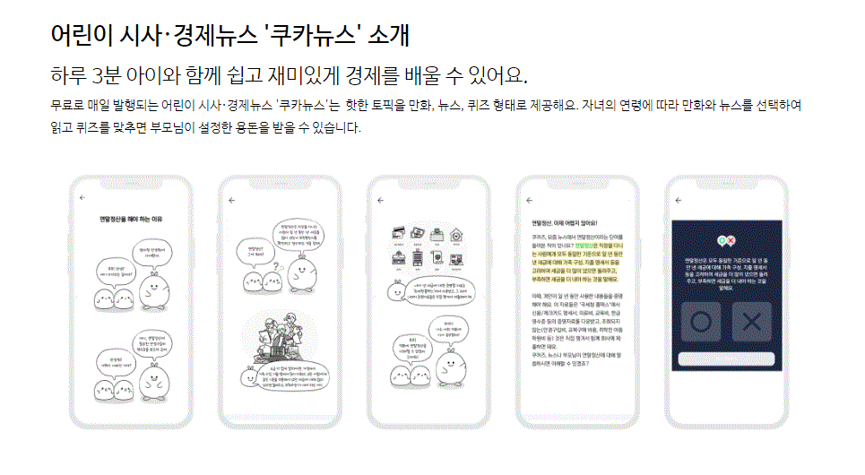부모와 자녀 모두를 위한 서비스로 스스로 소비 방향을 정하고 관리할 수 있는 힘을 길러주기 좋은 서비스입니다. 어린이 시사·경제뉴스도 매일 무료로 제공되며 자녀의 연령에 맞게 만화와 뉴스를 선택하여 퀴즈를 맞힐 시 부모님이 설정한 용돈도 받을 수 있어 아이도 쉽고 재미있게 돈에 대해 배울 것 같습니다.