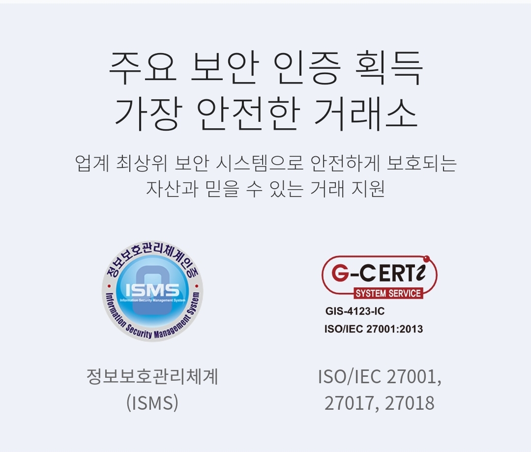 - 상장 가상화폐 : 100여 개의 가상화폐 거래 가능