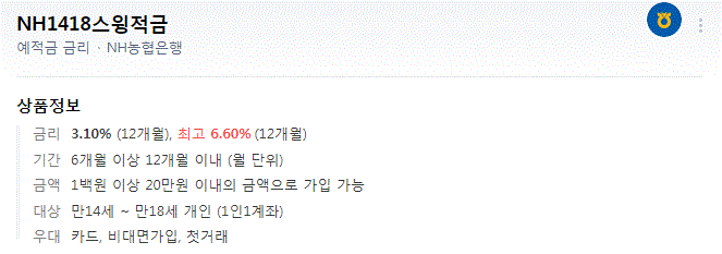NH1418스윙적금 금리 및 우대금리
