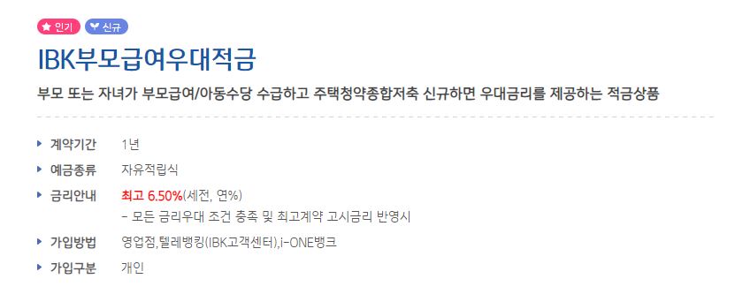 IBK부모급여 우대적금
