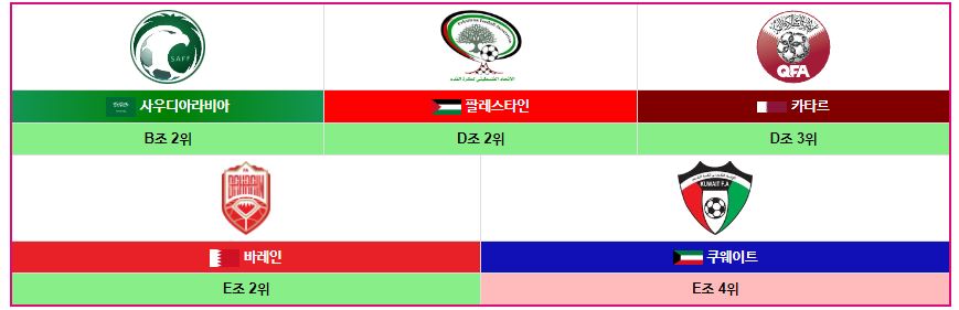 4위 쿠웨이트 2무 1패 승점 12점 득실차 -9