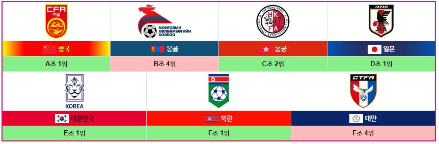 1위 북한 3승 승점 9점(16강 진출)