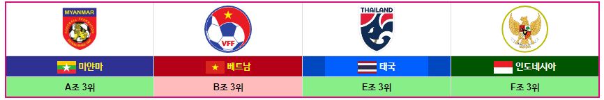 3위 태국 2무 1패 승점 2점 득실차 -4(16강 진출)