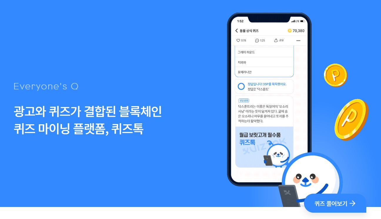 - 퀴즈톡 - 퀴즈를 출제하거나 퀴즈의 정답을 맞혔을 시 포인트 적립 / 이용자가 직접 문제를 낼 수 있음 / 참여 횟수 제한 없이 포인트 획득 가능