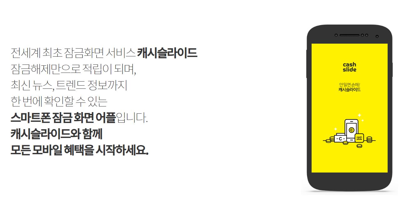 - 캐시슬라이드 - 손으로 밀어 캐시적립 / 바로적립 / 미션적립 등 적립금 랜덤 지급