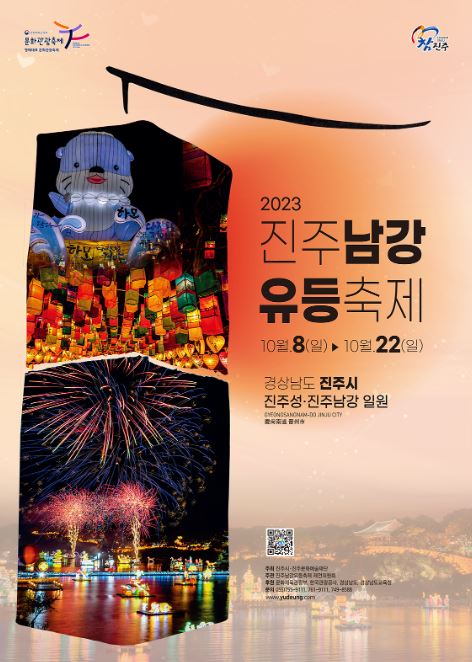 2023 진주 남강유등축제는 2023년 10월 8일 일요일부터 2023년 10월 22일 일요일까지 진행됩니다. '역사의 강 평화를담다'라는 주제로 진행되며 작년에 비해 올해는 축제기간이 조금 단축되어 진행됩니다.