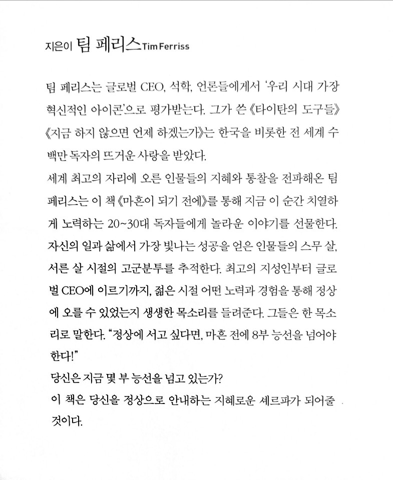 마흔이 되기 전에 저자 팀페리스는 책을 시작하며에서 이렇게 말을 하고 있내요