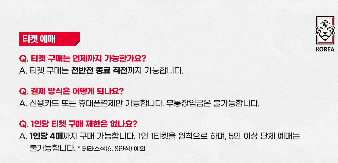30만 원인 프리미엄 A석은 레플리카(반팔) 및 뷔페가 제공됩니다. 베트남전 매치데이 머플러 및 백호 풍선 응원봉이 제공되는 프리미엄 B석은 20만 원이며, 튀니지전과 달리 베트남전에는 스카이박스는 판매되지 않습니다.