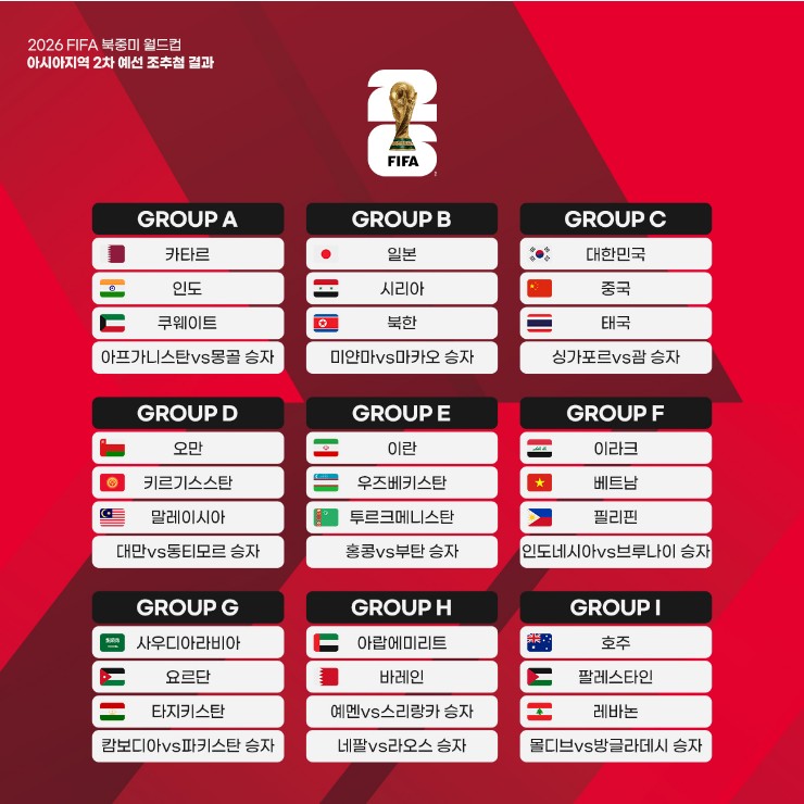 - 2026 FIFA 북중미월드컵 아시아 2차 예선 조추첨 결과