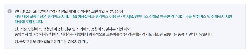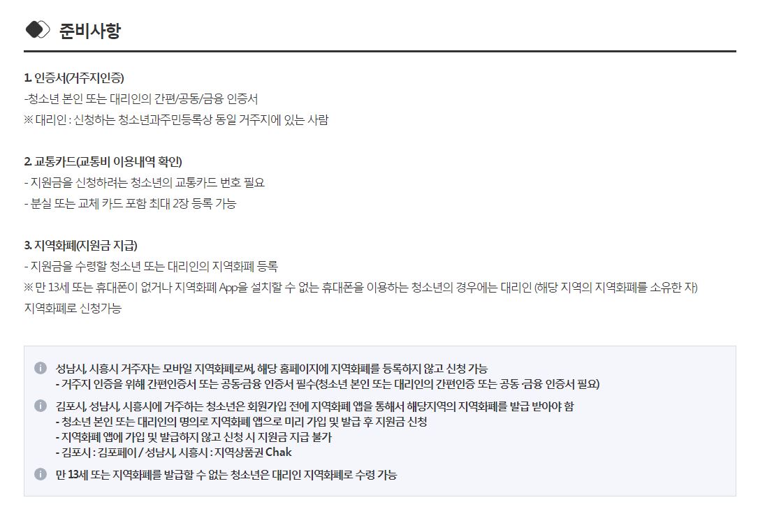 - 신청사이트 : [경기도 청소년 교통비 지원 포털]
