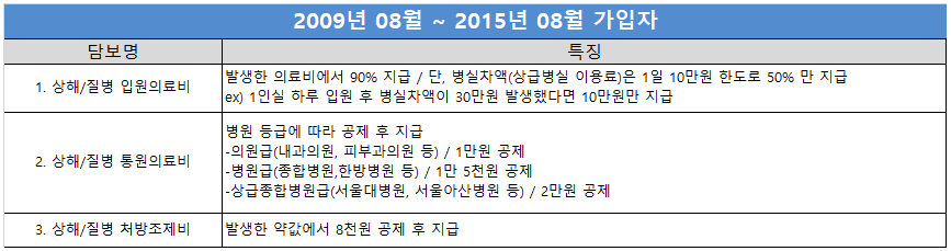 실비보험 가입일자가 2009년 8월 ~ 2015년 8월 가입자