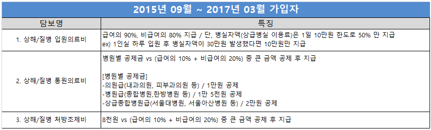 실비보험 가입일자 2015년 09월 ~ 2017년 03월 가입자들
