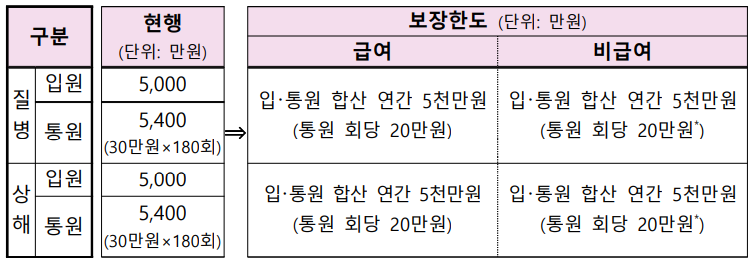 - 입원의료비는 = 5,000만 원 한도를 보장