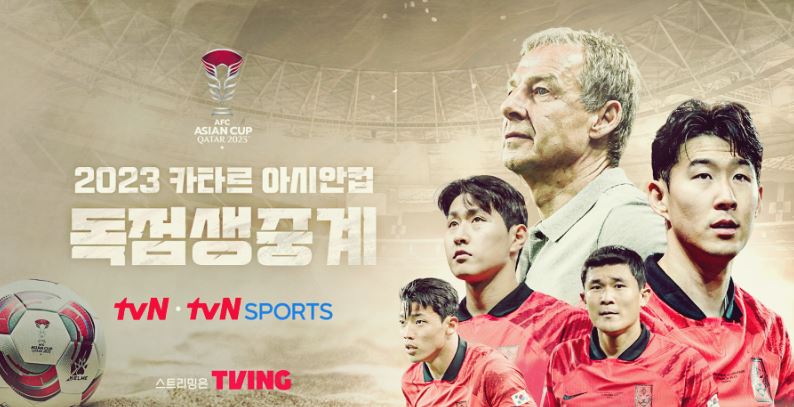 2023 AFC 아시안컵은 국내 TV 중계권이 CJ ENM이 보유해 tvN, tvN SPORTS가 생중계하며, 온라인은 TVING, 쿠팡플레이를 통해 생중계될 예정입니다. 또한, 2023 카타르 아시안컵 중계는 계열사인 CGV 극장에서도 한국 대표팀의 경기를 생중계 상영할 예정입니다.