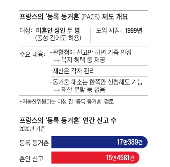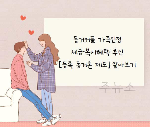 대통령 직속 저출산고령사회위원회(이하 저출산위)가 저출산 대책의 하나로 동거하는 남녀에게도 가족 지위를 인정해 법적·복지 혜택을 제공하는 ‘등록 동거혼’ 도입을 추진한다고 합니다. 동거 커플을 가족으로 인정하는 '등록 동거혼'에 대해 알아보겠습니다.