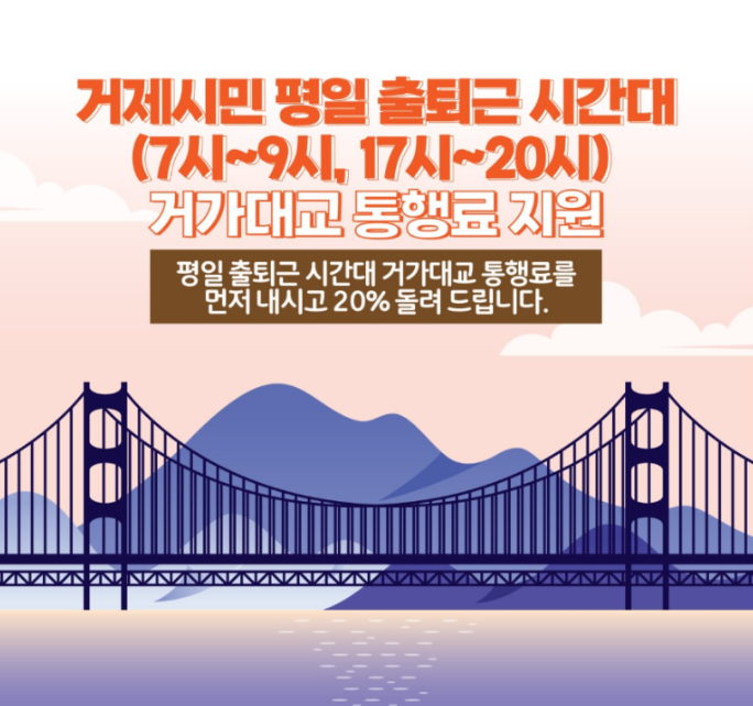 거제시민 평일 출퇴근 시간대 거가대교 통행료 지원 내용 및 대상자