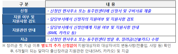 - (오프라인) 관할 면·동주민센터에서 출생신고와 함께 첫만남이용권 신청