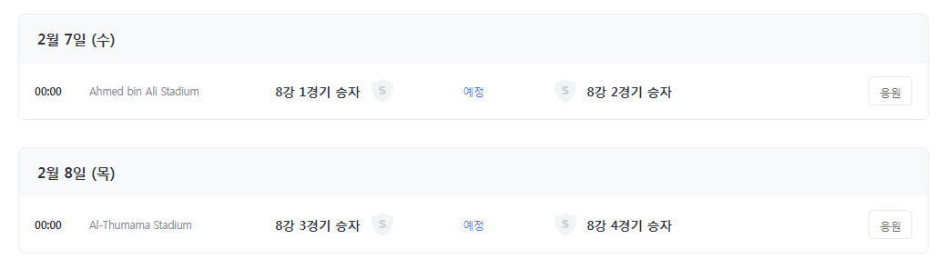 아시안컵 준결승은 2월 7일 수요일과 8일 목요일 이틀어 걸쳐 치러집니다.