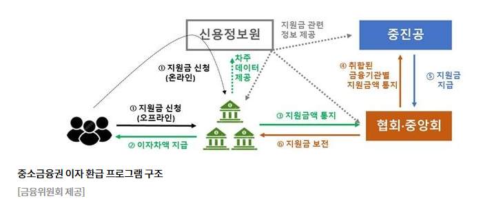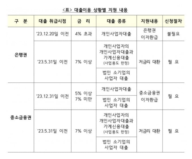 자영업자와 소상공인의 이자 환급은 높은 대출금리로 어려움을 겪고 있는 자여업자와 소상공인의 이자 부담을 줄여주기 위해 시행됩니다. 이를 위해 '이자환급'과 더불어 '저금리 대환 프로그램 확대 개편'을 추진합니다. 시중은행을 비롯해 지방은행과 외국계은행, 인터넷은행까지 총 17개 은행이 약 188만명에 1조 5000억 원을 돌려줄 예정이며 순차적으로 지급될 예정입니다.