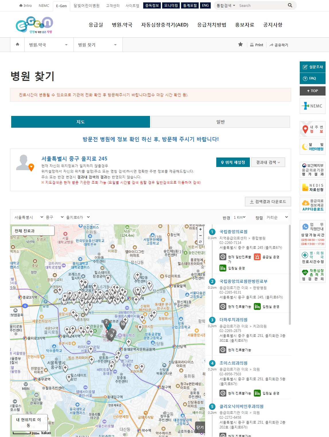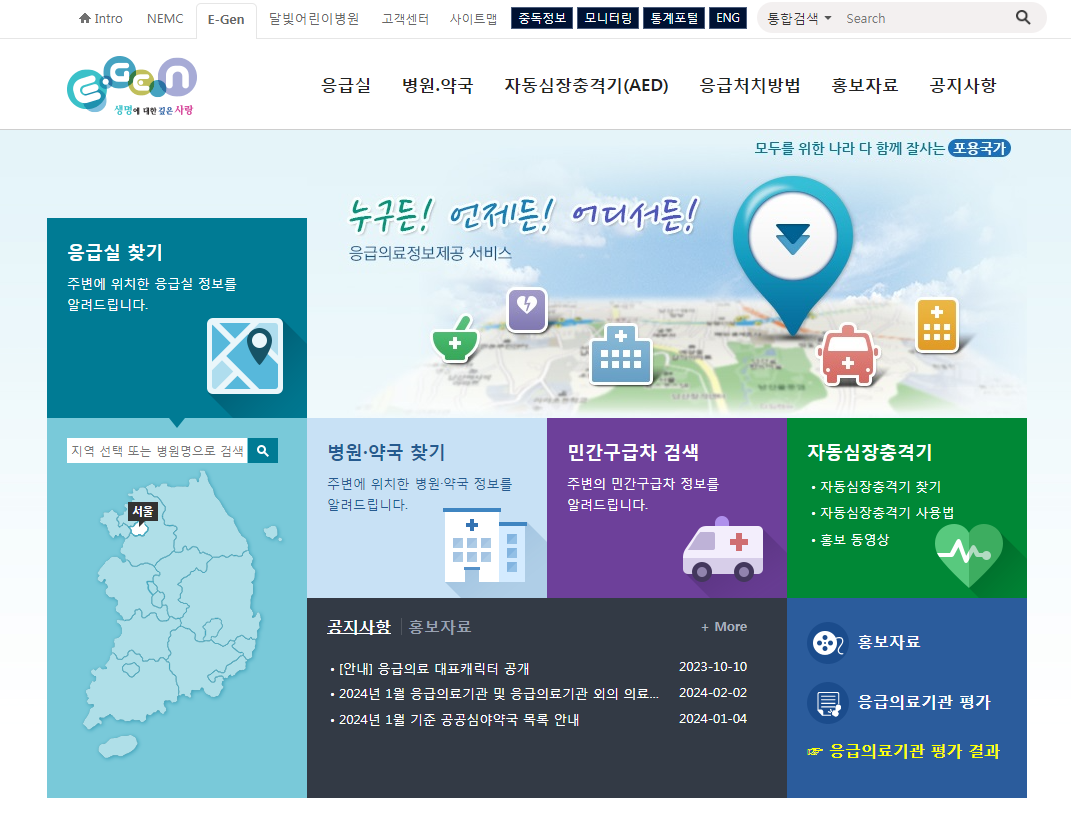 인터넷에서 명절병원을 검색하면 응급의료포털 E-Gen이 검색됩니다. 응급의료포털에서는 응급실 찾기, 문 연 병원, 약국 등의 정보뿐만 아니라 응급처치 방법이나 달빛어린이병원에 대한 정보가 나오기도 합니다. 의료기관의 진료시간 정보를 알 수 있으며 내 위치 중심으로 실시간 진료 가능한 병원을 찾을 수 있습니다. 명절 병원을 찾았을 시에는 대기인원이 많아 진료마감 등의 사정으로 문을 일찍 닫을 수 있으니 전화문의하고 방문하는 게 좋습니다.