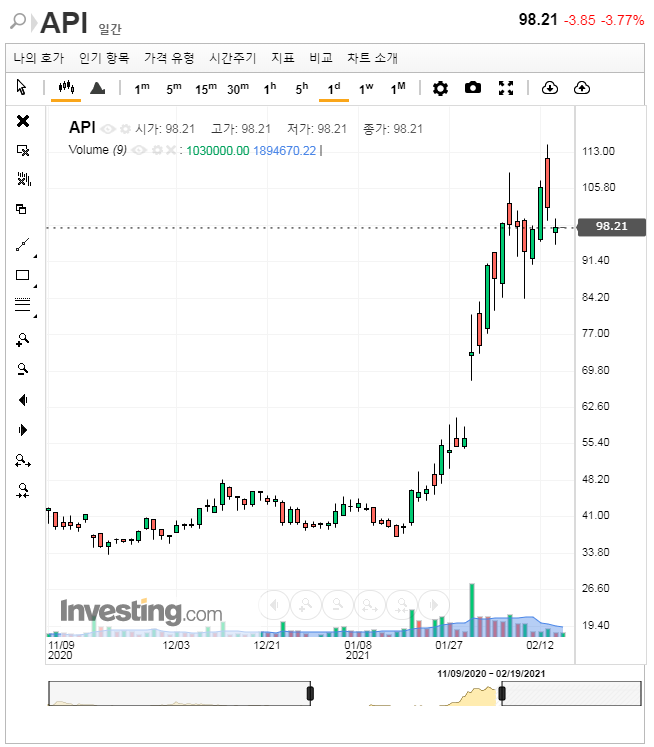 현재 클럽하우스 핵심 관련주는 "중국의 음성 (API:응용프로그램 인터페이스) 판매사 아고라입니다. 아고라는 2020년 7월 나스닥시장에 상장하였으며, 다수의 이용자가 실시간으로 음성 대화를 할 수 있도록 하는 개발 툴을 판매하고 있습니다. 음성 대화를 하는 부분은 클럽하우스 앱의 주요 기능이 아고라 API 기반으로 하기에 아고라 주가는 올해 들어 148.16% 급등하여 작년 3분기 매출이 3038만 달러를 달성하였습니다.
