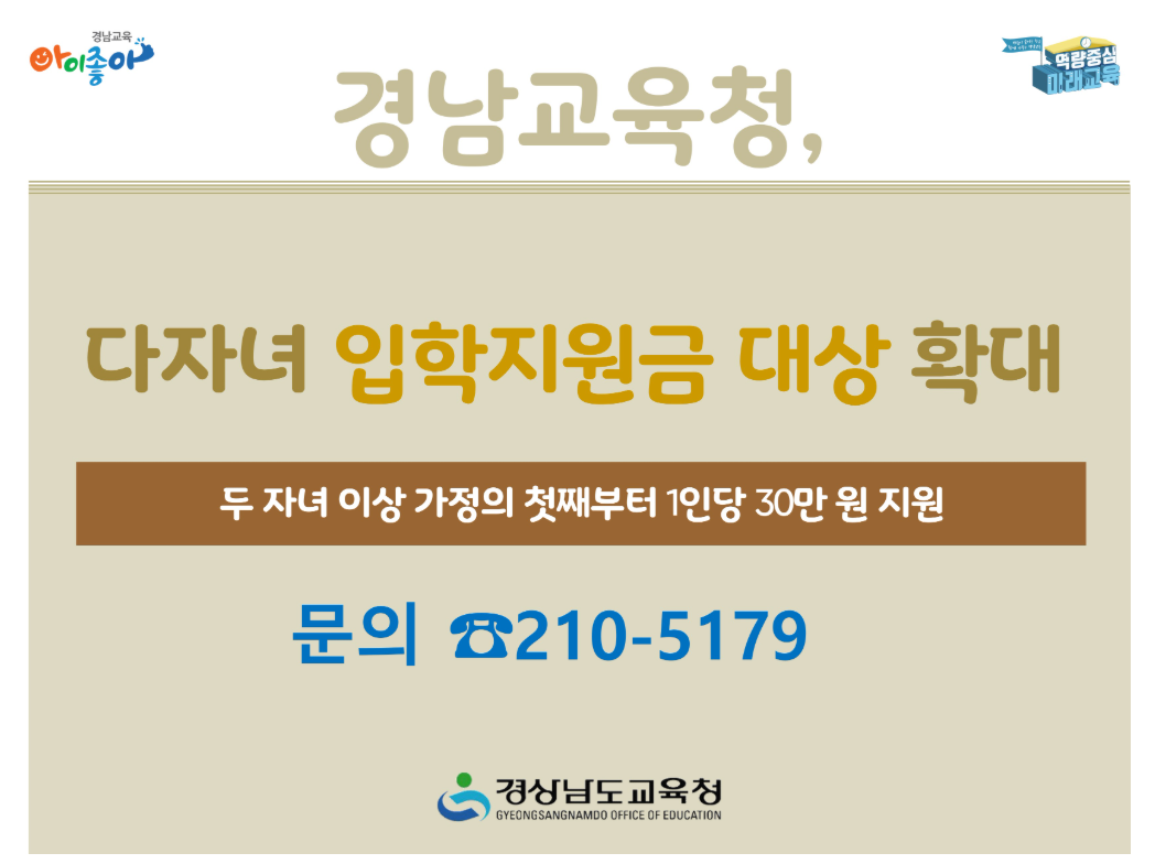 경남 다자녀 가정 입학 지원금 2025년 최신 정보
