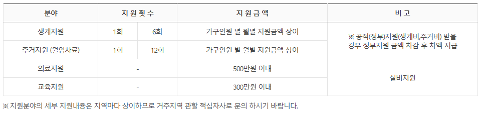- 의료비, 약제비, 입원비 등 긴급 건강지원