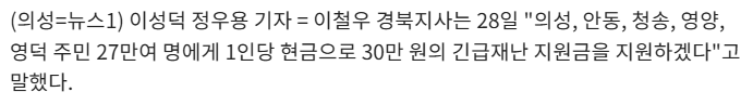 재난은 누구에게나 올 수 있지만, 그 피해의 무게는 각자 다릅니다. ‘경북 산불 재난지원금 30만원’이란 이름 아래 묶여버린 현실은 우리 사회의 복지 체계가 아직 갈 길이 멀다는 걸 보여주고 있죠. 지금은 누군가의 이야기지만, 언젠가 우리 모두의 이야기가 될 수도 있다는 사실. 그래서 이 문제는 관심이 필요하고, 감시가 필요합니다. 진짜 필요한 곳에, 진짜 도움이 닿을 수 있도록요.