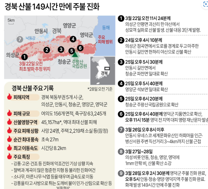 | 산불 피해 긴급 회의 개최 | 화재 발생 후 5시간 내 |