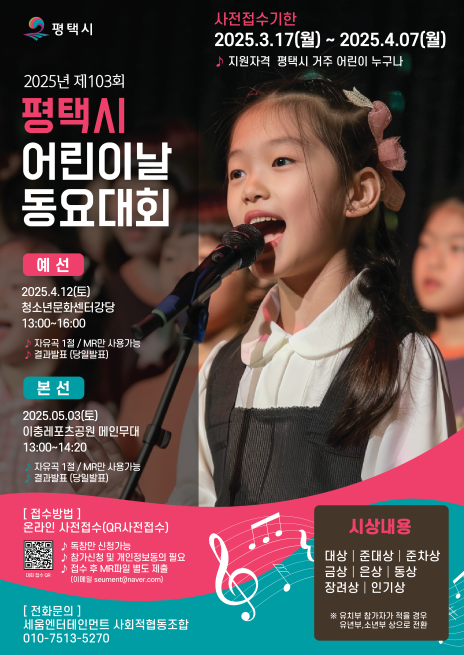 2025년 103회 평택시 어린이날 동요&그림그리기 대회 안내