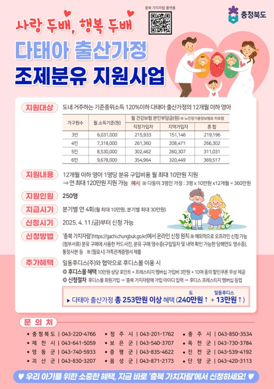 충청북도 다태아 출산가정 조제분유 지원사업 총정리