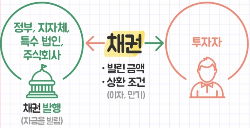 채권이란, 정부, 공공기관 및 기업 등의 발행자가 비교적 거액의 자금을 마련하기 위해 발행하는 유가증권으로