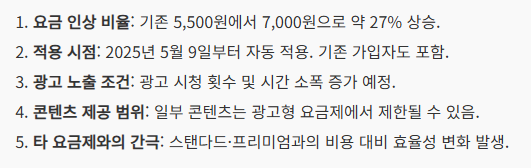 - 요금 인상 비율: 기존 5,500원에서 7,000원으로 약 27% 상승.