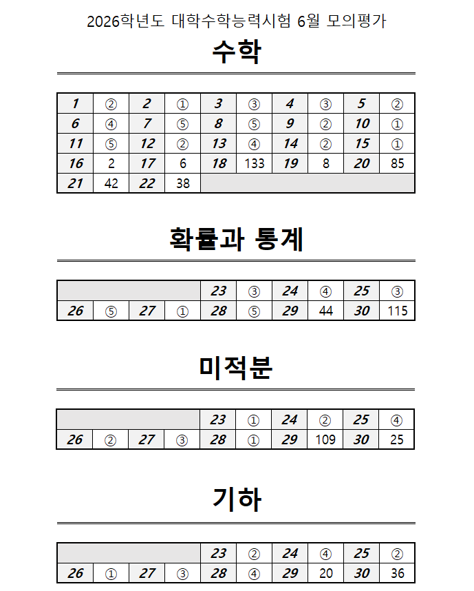 2026학년도 6월 모의고사 정답지와 등급컷은?
