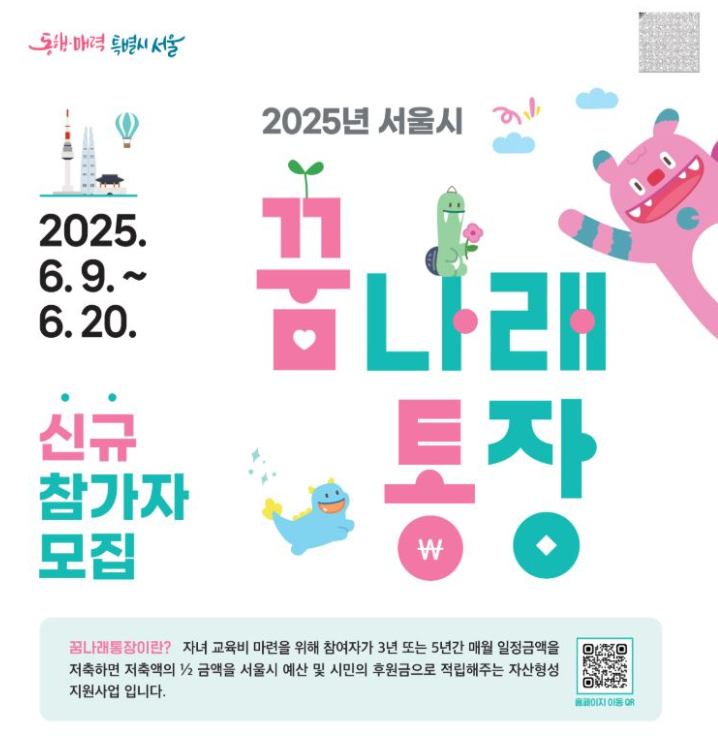 꿈나래통장은 단순한 저축 개념을 넘어, 서울시가 저소득 가정의 자녀 교육비 마련을 실질적으로 지원하는 정책형 자산형성 프로그램입니다. 매월 일정 금액을 꾸준히 저축하면 서울시가 절반을 추가 적립하고, 금융교육·법률 상담 등 부가 서비스까지 제공됩니다. 하지만 혜택이 큰 만큼, 정확한 자격 요건과 절차를 이해하는 것이 매우 중요합니다.