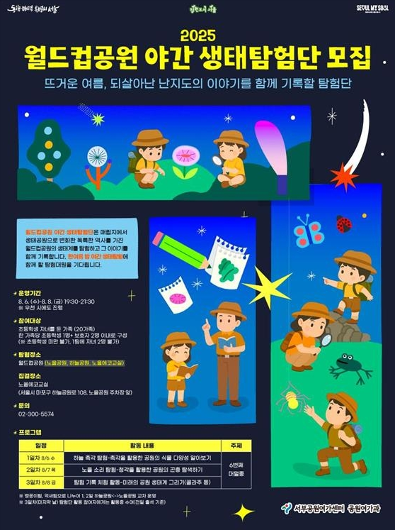월드컵공원 야간 생태탐험단은 가족과 함께 특별한 여름밤을 보낼 수 있는 뜻깊은 기회를 제공합니다. 달빛 아래에서 곤충 소리를 들으며 탐험일지를 작성하는 순간, 평범했던 일상이 소중한 추억으로 바뀝니다. 이번 여름에는 야간 생태체험 프로그램을 통해 자연과 하나 되는 시간을 만들어보세요. 작은 준비와 사전 정보만 있으면 아이들과 함께하는 탐험이 훨씬 더 풍성하고 즐겁게 완성됩니다.
