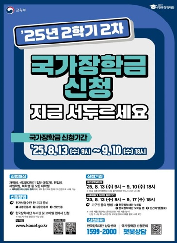 2025학년도 2학기 2차 국가장학금 통합 신청 지금 안 하면 놓칠 수 있어요!