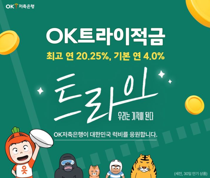 최대 연 20.25% 이자를 받을 수 있다는 OK트라이적금, 정말 가능한 이야기일까요? OK저축은행에서 출시한 이 특별한 적금 상품은 단순히 금리만 높은 것이 아니라, 유쾌한 참여 방식과 루틴 저축이라는 새로운 개념이 결합된 것이 특징입니다. 하루 5,000원 또는 1만 원씩 정액으로 30일간 적립하고, 드라마 ‘트라이’를 시청한 뒤 인증만 해도 최고 우대금리를 제공받을 수 있어 많은 관심을 받고 있습니다.