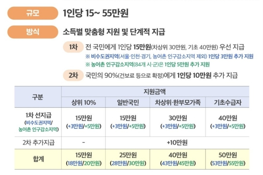 | 지급 기준 | 소득 하위 90% | 건보료·재산·금융소득 기준 반영 |