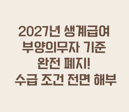 생계급여 2027년까지 부양의무자 기준 전면 폐지 사실일까?